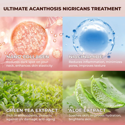 Abera Neck Cream is specifically designed to address acanthosis nigricans, dark neck & black neck. Using natural and especial ingredients, such as nano collagen, niacinamide, green tea extract, and aloe extract.