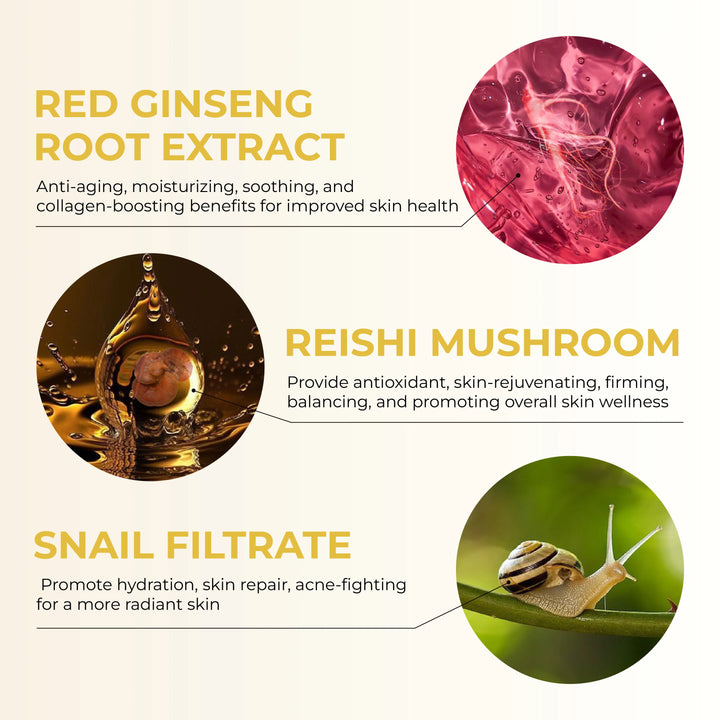 𝐈𝐆𝐍𝐈𝐓𝐄 𝐘𝐎𝐔𝐑 𝐑𝐀𝐃𝐈𝐀𝐍𝐂𝐄 - Unleash the mind-blowing power of Korean Ginseng Extract and Japanese Red Reishi Mushroom. Embrace flawless skin that mesmerizes with an irresistible glow. Get ready to command attention.